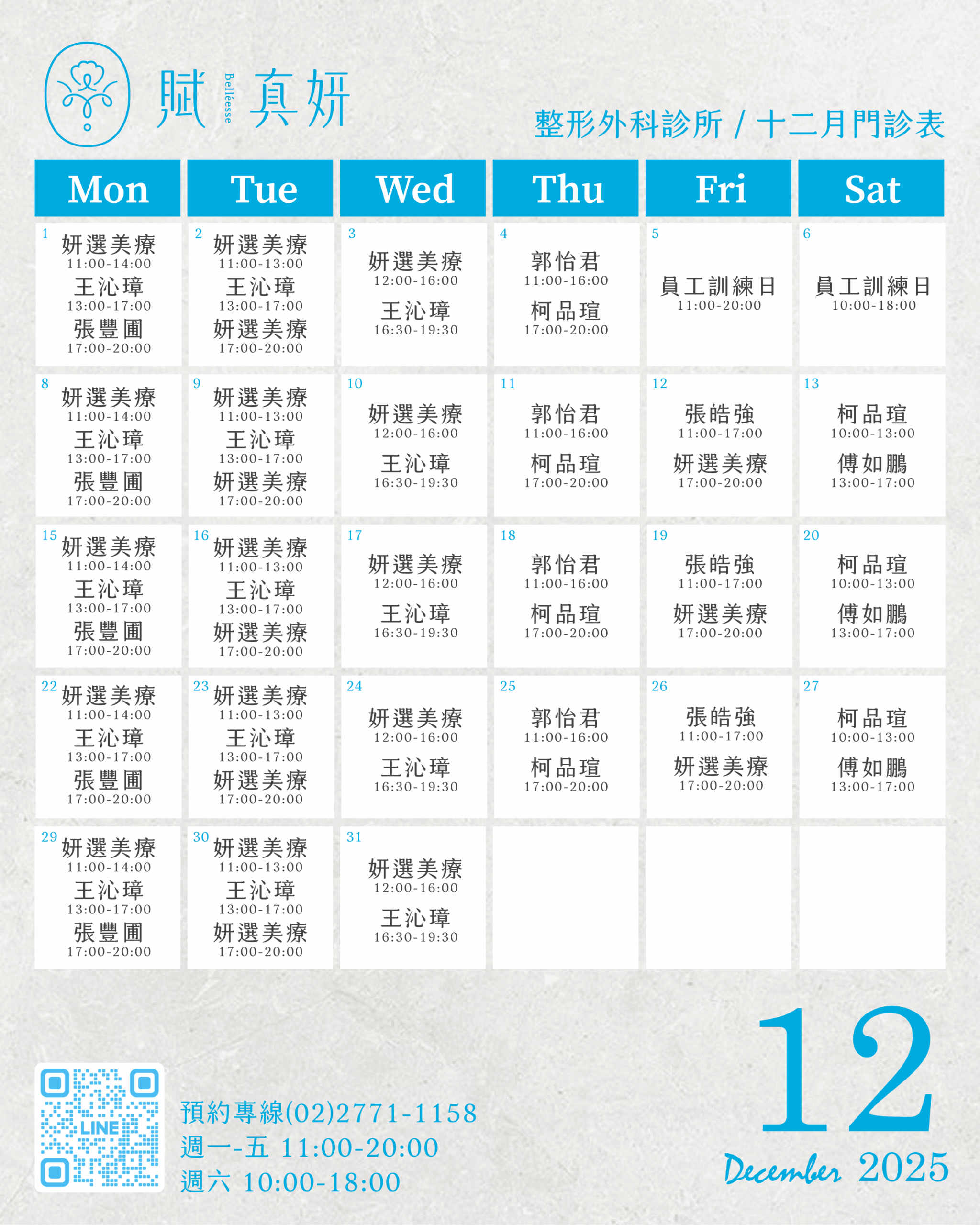賦真妍診所醫師團隊擁有豐富的醫學知識和臨床經驗,以貼心、專業的態度,為您量身訂製最合適的療程方案,精準打造您心中的理想模樣,從而實現美麗與自信。