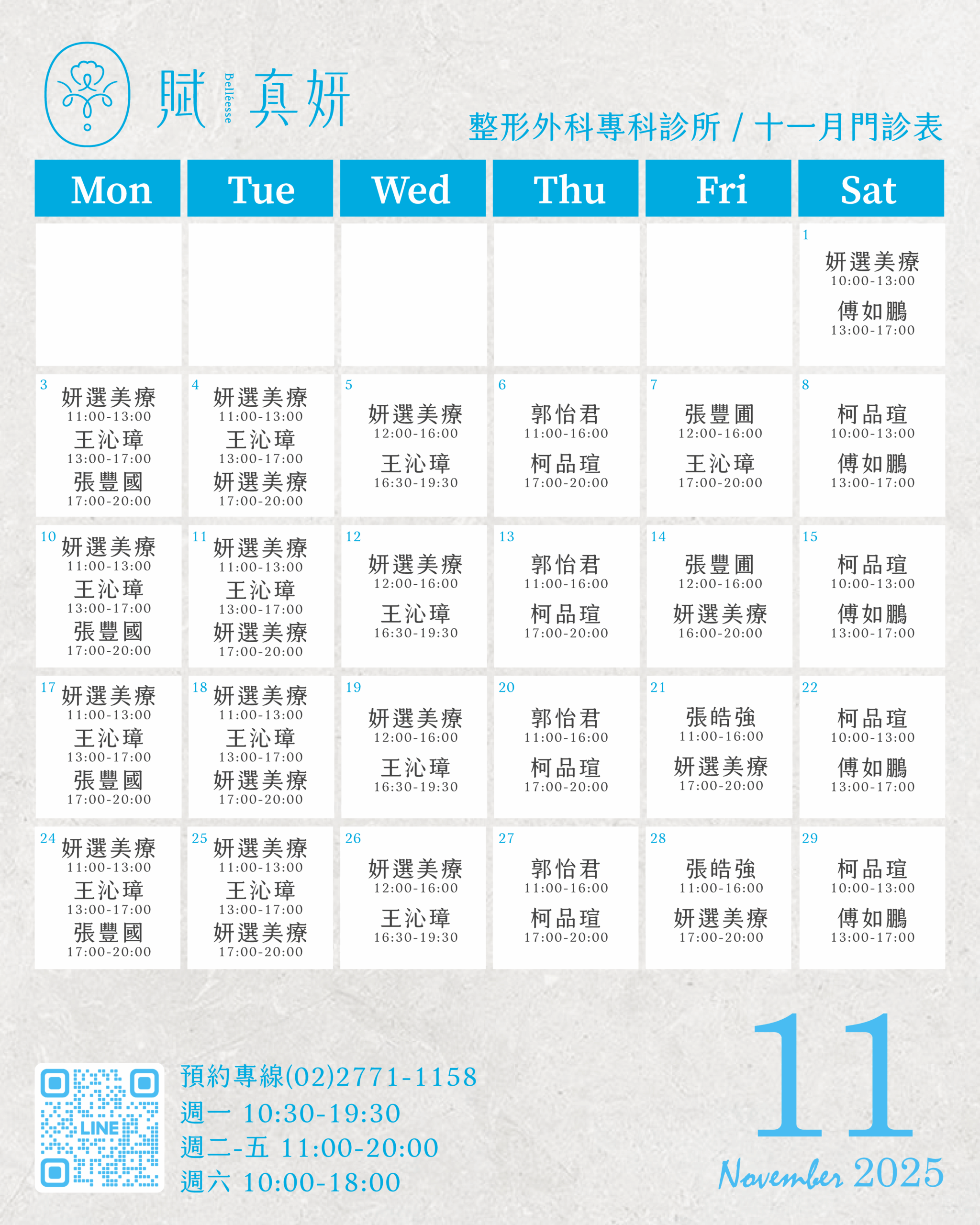 賦真妍診所醫師團隊擁有豐富的醫學知識和臨床經驗,以貼心、專業的態度,為您量身訂製最合適的療程方案,精準打造您心中的理想模樣,從而實現美麗與自信。